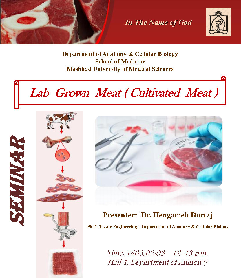 Holding a seminar of "Lab Grown Meat" at department of Anatomy and cell biology School of medicine, Mashhad university of medical science