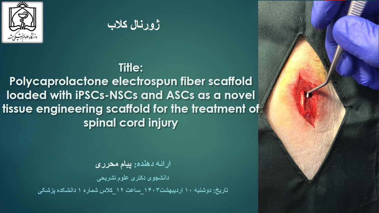 " Polycaprolactone electrospun fiber scaffold loaded with iPscs-Nscs and ascs as a novel tissue engineering scaffold for the treatment of spinal cord injury"