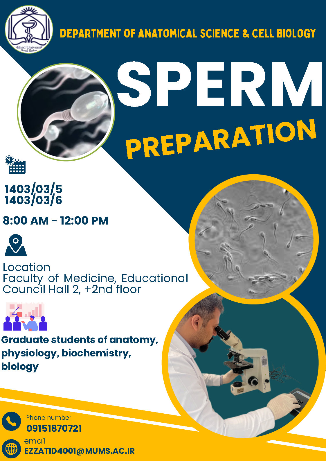 احتراما به اطلاع می رساند گروه علوم تشریحی و بیولوژی سلولی کارگاه "آماده سازی اسپرم" برگزار می نماید.